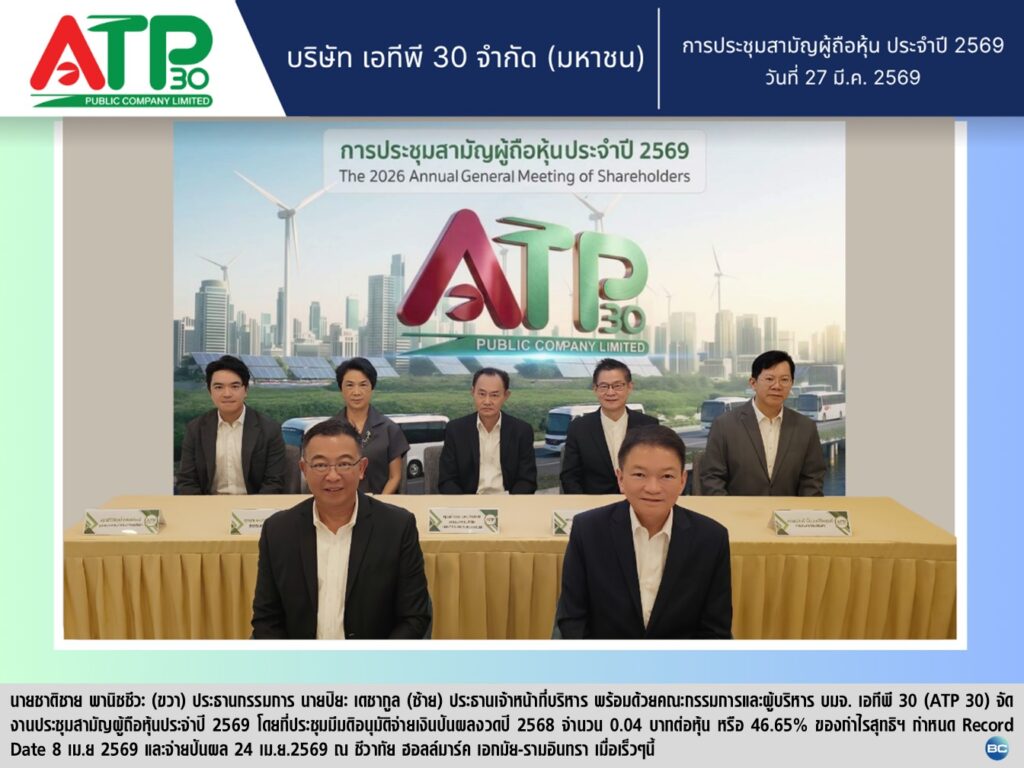 View Larger Image ATP30 ไฟเขียวจ่ายปันผลปี 68 หุ้นละ 0.04 บาท 46.65% กำไรสุทธิ By ann|2026-04-10T11:45:22+07:00April 2, 2026|General, ข่าวและความเคลื่อนไหว, นักลงทุนสัมพันธ์, ประชาสัมพันธ์|0 Comments Share This Story, Choose Your Platform! FacebookTwitterRedditLinkedInWhatsAppTumblrPinterestVkXingEmail About the Author: ann Related Posts “ATP30” เร่งปรับทัพ! เล็งซื้อรถบัส EV เพิ่ม 30 คัน รับมือวิกฤติน้ำมันแพง ดันขนส่งสู่พลังงานสะอาด Gallery “ATP30” เร่งปรับทัพ! เล็งซื้อรถบัส EV เพิ่ม 30 คัน รับมือวิกฤติน้ำมันแพง ดันขนส่งสู่พลังงานสะอาด ATP30: ยุทธศาสตร์ รถไฟฟ้า สู่ Green Mobility Gallery ATP30: ยุทธศาสตร์ รถไฟฟ้า สู่ Green Mobility ATP30 เดินหน้าเพิ่มบัส EV – ลงทุนสถานีชาร์จ Gallery ATP30 เดินหน้าเพิ่มบัส EV – ลงทุนสถานีชาร์จ ATP30 วางหมากสู้ดีเซล โดดรับเมกะเทรนด์อีวี Gallery ATP30 วางหมากสู้ดีเซล โดดรับเมกะเทรนด์อีวี Leave A Comment Cancel replyComment Save my name, email, and website in this browser for the next time I comment.